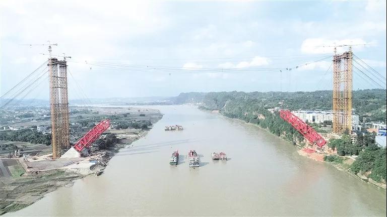 (海波新聞報道)2019年11月22日,海波重科四川省犍為岷江特大橋項目部發來最新消息,全長2782米的犍為岷江特大橋,目前主橋鋼管拱的吊裝、結構裝焊、施工平臺搭設等工作進展順利,主橋的鋼管拱分別從兩岸伸出,放眼江面,數艘運輸船舶正往來忙碌,現場建設一片火熱。