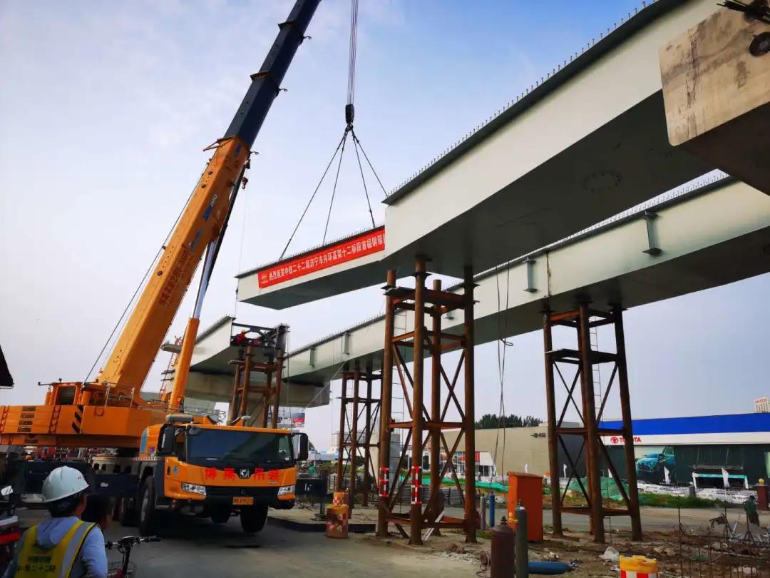 經(jīng)過約長達(dá)一個多小時的設(shè)備調(diào)試,濟(jì)寧西外環(huán)十二標(biāo)段首次吊裝的第一片鋼箱梁被緩緩吊起,準(zhǔn)確無誤的落在預(yù)定架設(shè)點,現(xiàn)場瞬間爆竹齊鳴人聲鼎沸。作為濟(jì)寧市的大型市政項目,項目建成后對于完善濟(jì)寧市中心城區(qū)骨干路網(wǎng)、緩解中心城區(qū)交通擁堵、便捷城區(qū)對外交通聯(lián)系具有重要意義,海波重科也將一如既往,不辱使命,為下一步通車工作奮勇前行。